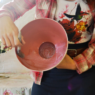 Ek is dol verlief op pienk en goud saam – die binnekant van hierdie lig gaan ek met gold leaf gild vir ekstra mooi maar ook om die lig van die gloeilamp meer te reflekteer.